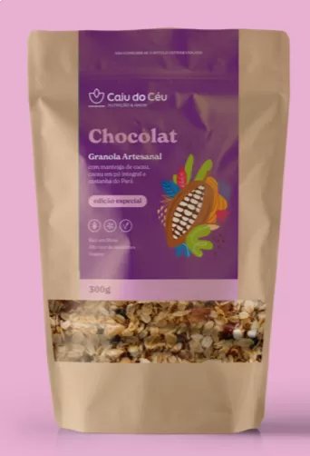 Uma granola com qualidade premium por apresentar uma agradável sensação de bem estar aos amantes do cacau. A cada colherada percebe-se a crocância dos cereais de aveia, milho e arroz com as 4 formas de uso do cacau: manteiga de cacau orgânica, cacau em pó alcalino, nibs de cacau orgânico e maravilhosas gotas de chocolate 70% que derretem na boca. Uma granola pra presentear-se em ocasiões especiais ou a quem você ama - e ama chocolate!